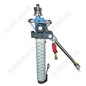 工程上常見的分類是按鑿巖機的支撐方式來分類的1、氣腿式鑿巖機這類鑿巖機的重量較輕,一般在25kg以下,工作時用手扶著操作。氣腿式鑿巖機可以打各種小直徑和較淺的炮孔。一般只打向下的孔和近于水平的孔。氣腿式鑿巖機由于它靠人力操作,勞動強度大,沖擊能和扭矩較小,鑿巖速度慢,現(xiàn)在地下礦山很少用它。屬于此類的鑿巖機有Y3、Y26等型號。